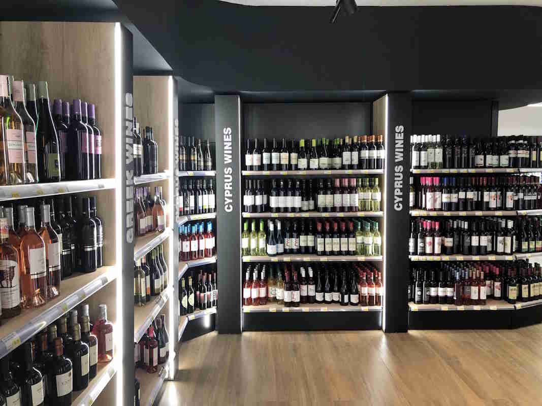 Eine typische Weinabteilung in einem zypriotischen Supermarkt. @KiprGuru